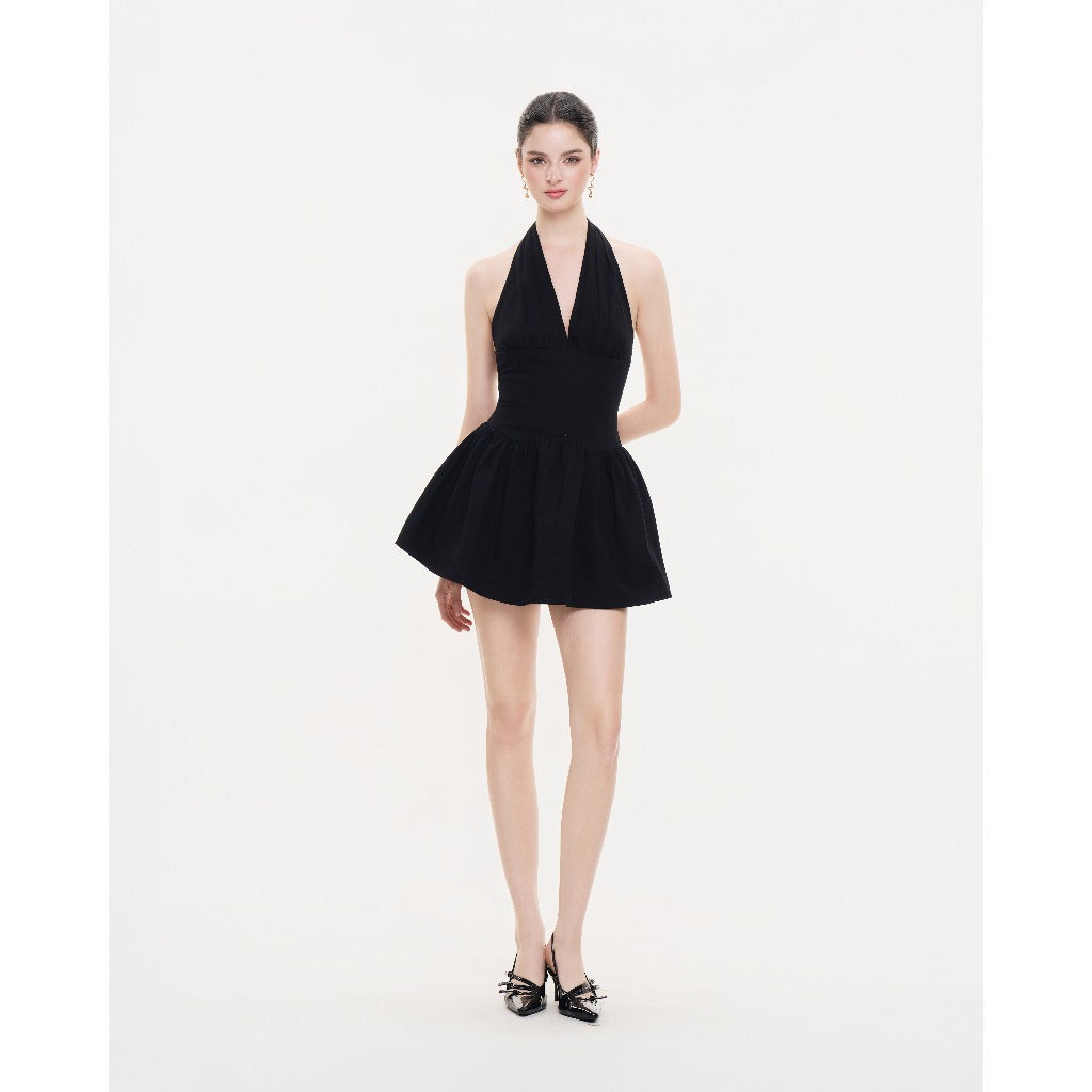 A modern halter dress that balances youthful energy and timeless sophistication, perfect for both daytime outings and elegant evenings.