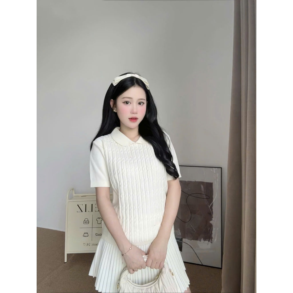 The Cable Knit Sweater by DELIZ brings timeless elegance with its delicate Peter Pan collar and premium rabbit-hair blend. The classic cable-knit texture adds dimension and warmth, creating a perfect mix of softness and structure. Ideal for cozy autumn days or layered winter looks, this design flatters every figure with its gentle silhouette.