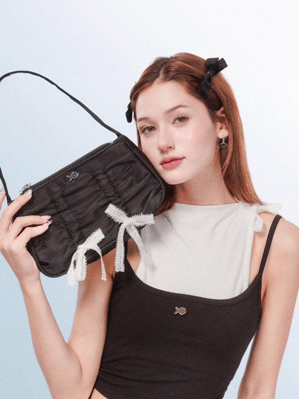 • Signature lace ribbon bow adds a soft and adorable touch.