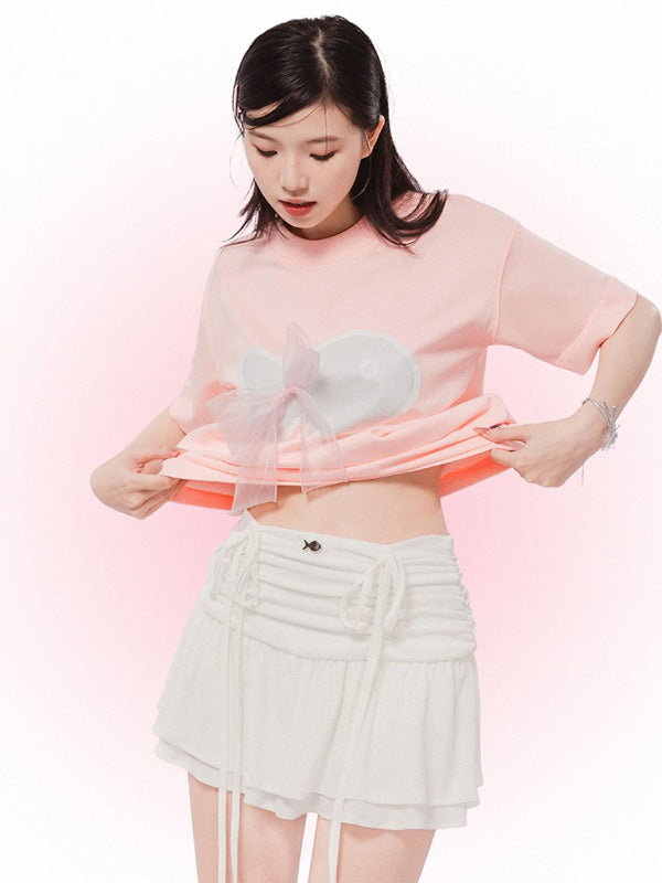 • High-waist design with a delicate bow detail accentuates the waistline.
