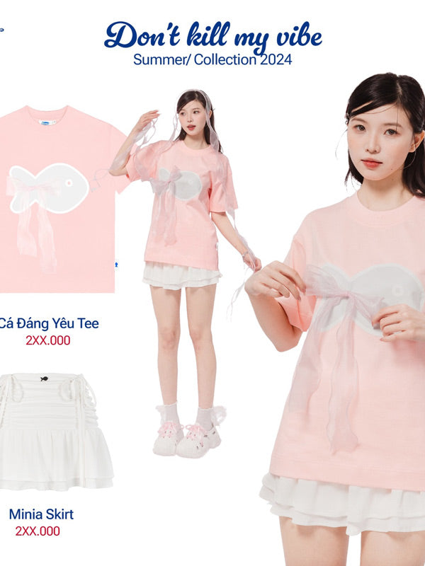 Embark on dreamy adventures with DKMV, where little ones confidently express their sweetness and charm. Made from breathable cotton with excellent moisture absorption, this tee ensures comfort for all-day play. Available in two delightful colors—gentle cream and vibrant pink—the highlight is the adorable “Cute Fish” print adorned with a dainty bow in the center, giving your child a feminine and standout look.