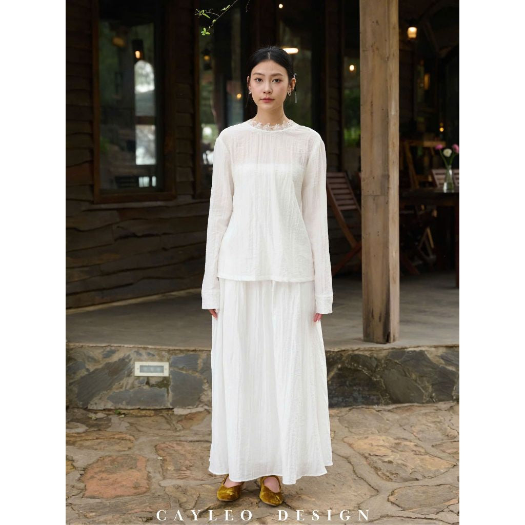 Redefine feminine elegance with the Elegant Organza Open-Back Set from CayLeo Design. This delicate two-piece outfit features a long-sleeve sheer organza blouse with a graceful back slit detail, paired with a soft flared maxi skirt. Designed for comfort and sophistication, it’s perfect for tea dates, garden walks, or timeless photoshoots.