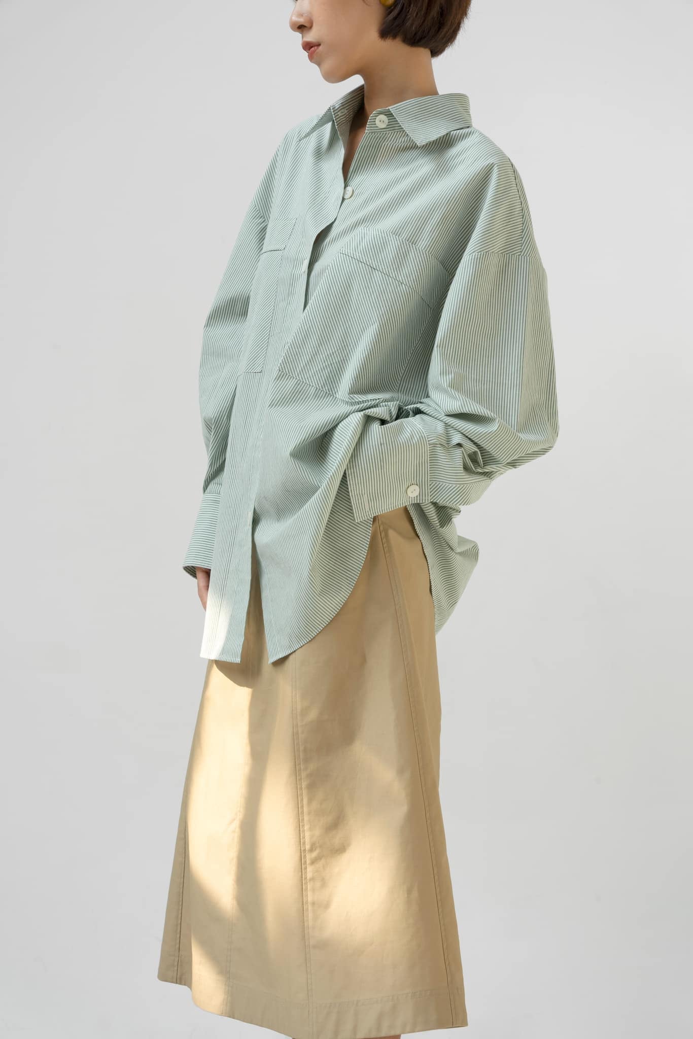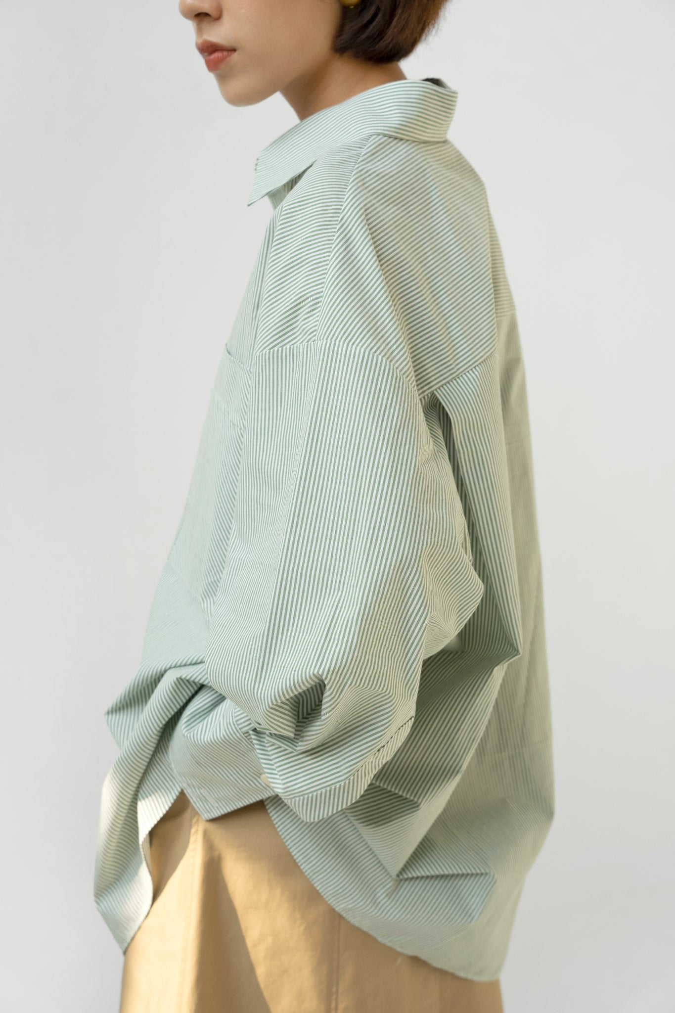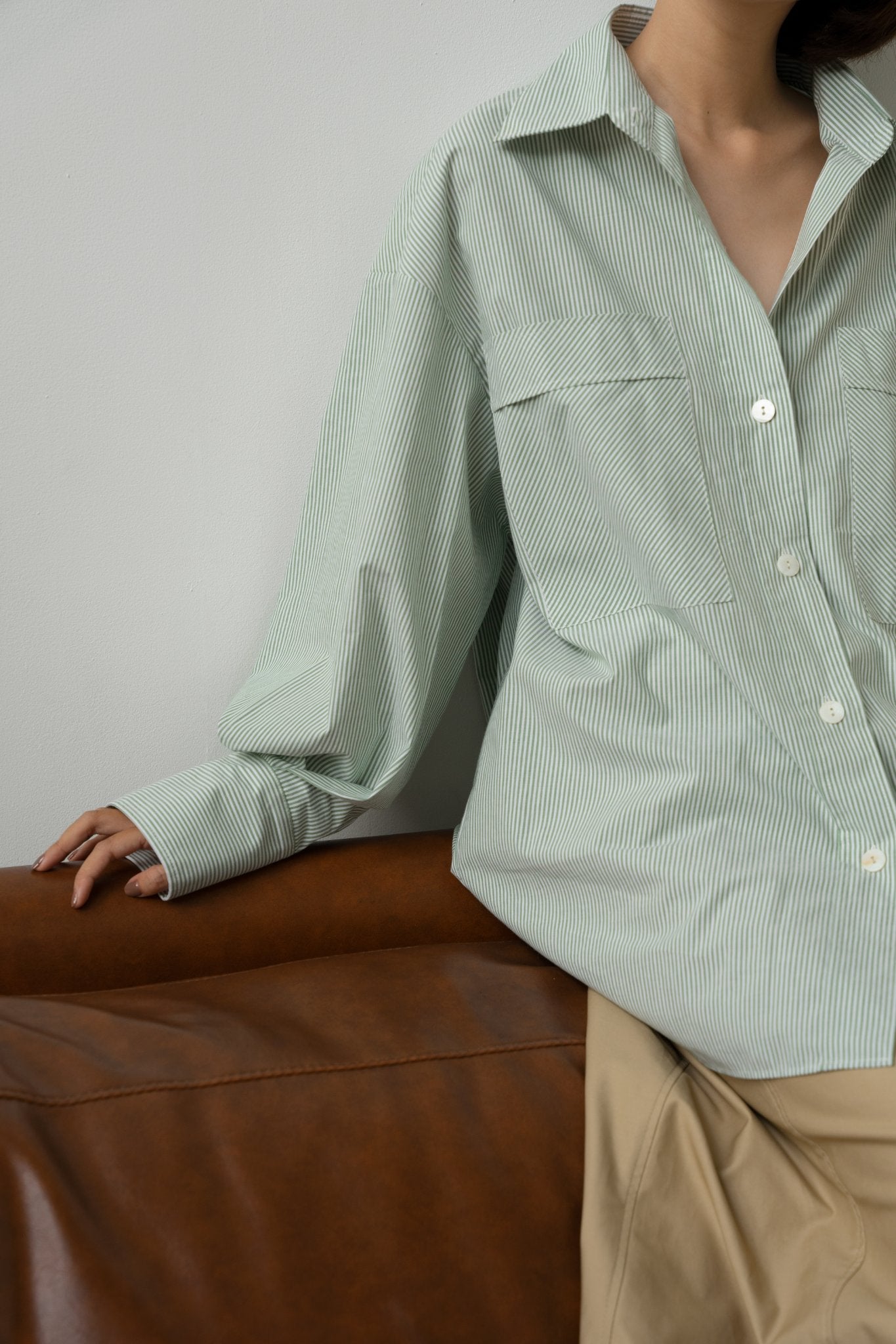 Green Striped Shirt is a lightweight, easy-to-style piece designed with a relaxed silhouette and a timeless striped pattern. Made from breathable Kate fabric, the shirt features a naturally wrinkled texture that can be easily ironed smooth, offering both character and convenience. This everyday essential is perfect for layering or wearing on its own, making it suitable for a range of looks—from casual streetwear to smart-casual outfits.