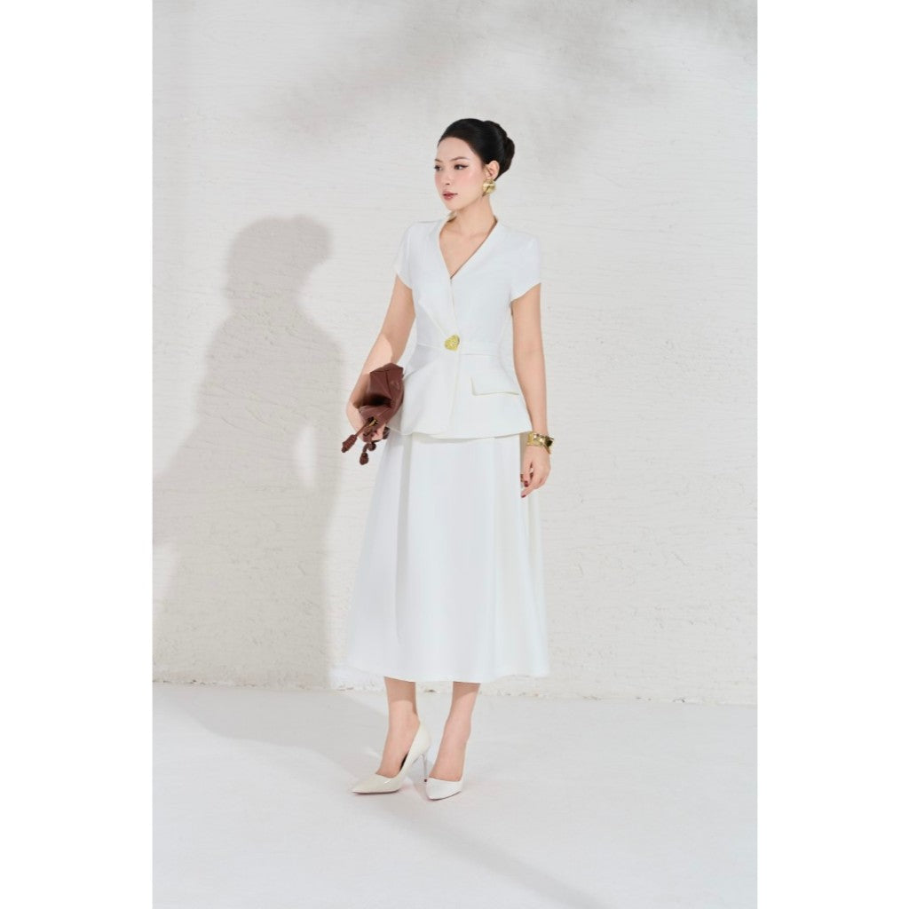 The Lily Belle Office Set by Charllot is designed from wrinkle-resistant premium fabric, delivering a consistently neat and polished appearance throughout the day. The set includes a tailored top paired with a high-quality skirt lined with soft silk, ensuring comfort, structure, and smooth movement.