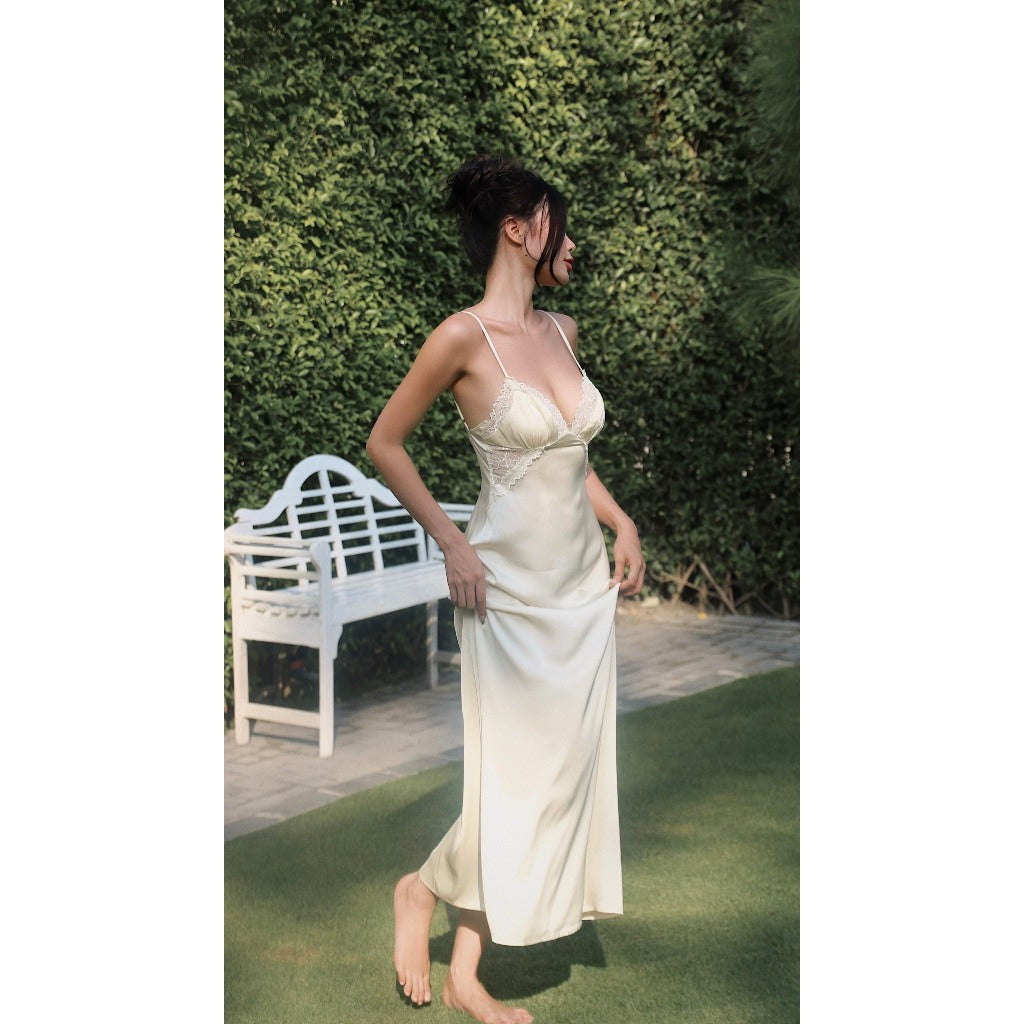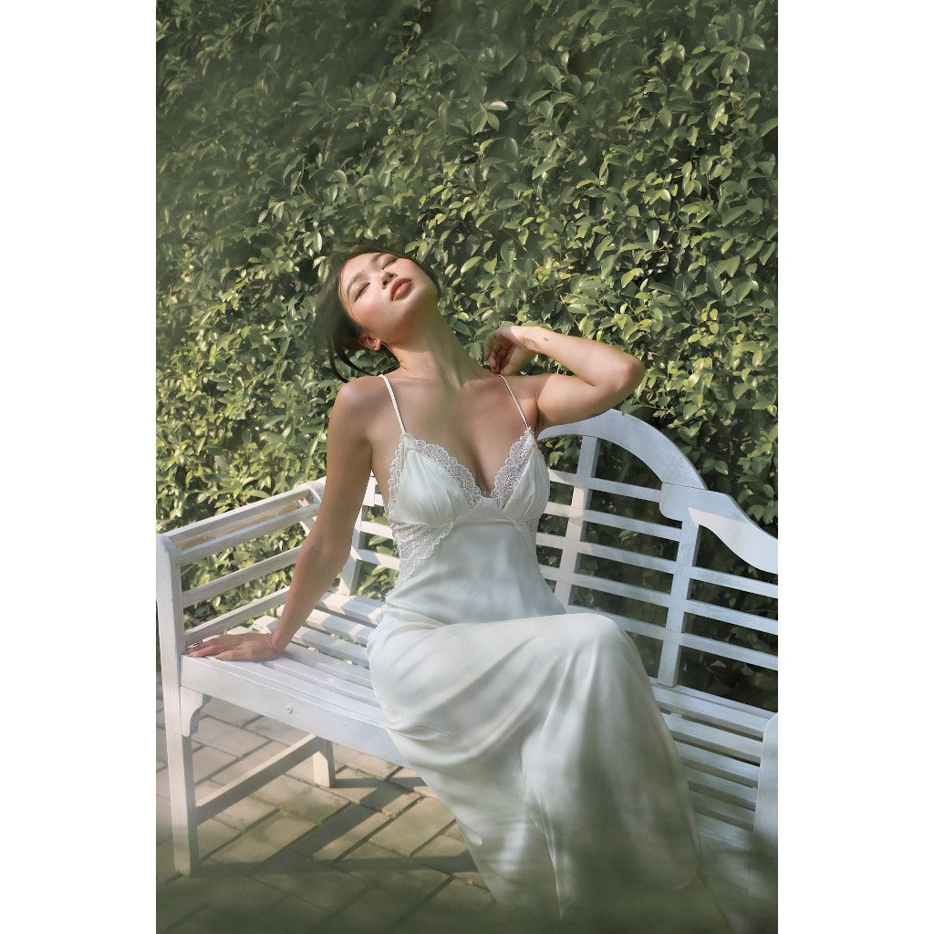 Experience timeless elegance with the Phoebe Silk Lace Nightdress from L'âme Rouge. Crafted from premium silk fabric, this nightdress embraces your natural beauty with a gentle sheen and a romantic lace touch. The delicate lace detailing along the neckline and hem enhances femininity, while the hidden back zipper ensures a flattering silhouette.