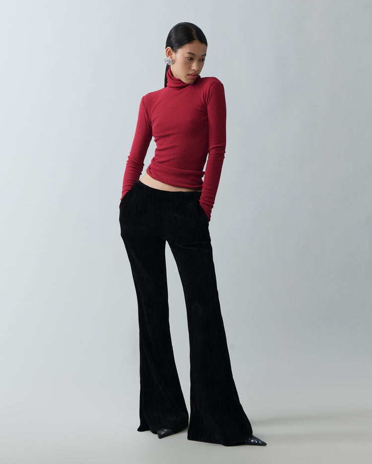 The Red Ribbed High-Neck Top is designed for those who love a clean silhouette with just the right amount of edge. Crafted from ultra-stretchy ribbed knit, this fitted top gently hugs your body, delivering warmth, comfort, and effortless style.